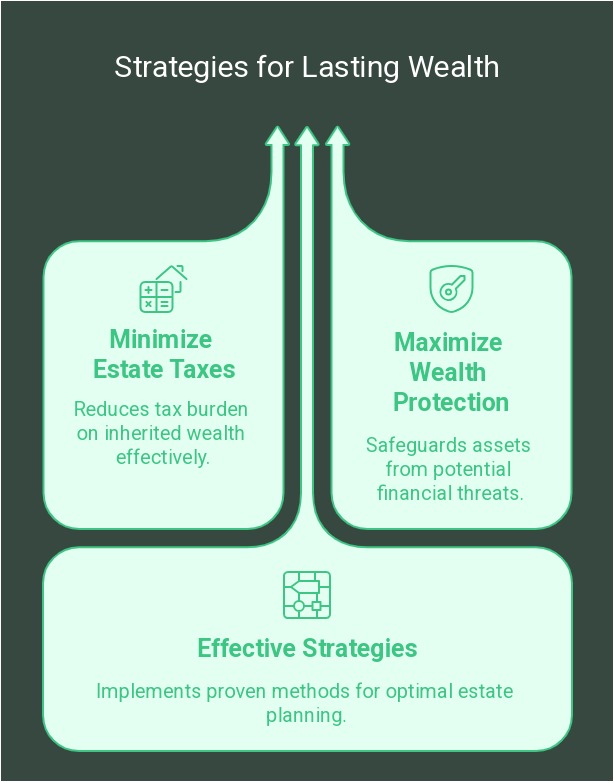 Trusts, life insurance planning, and legal asset protection are essential for preserving and maximizing generational wealth.